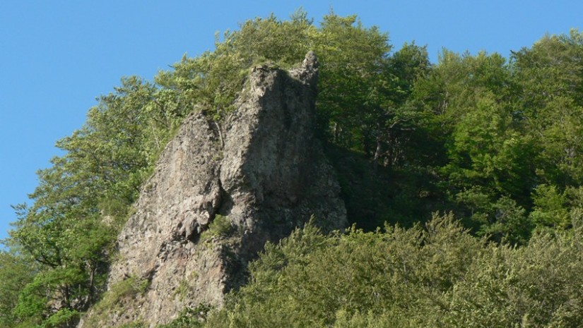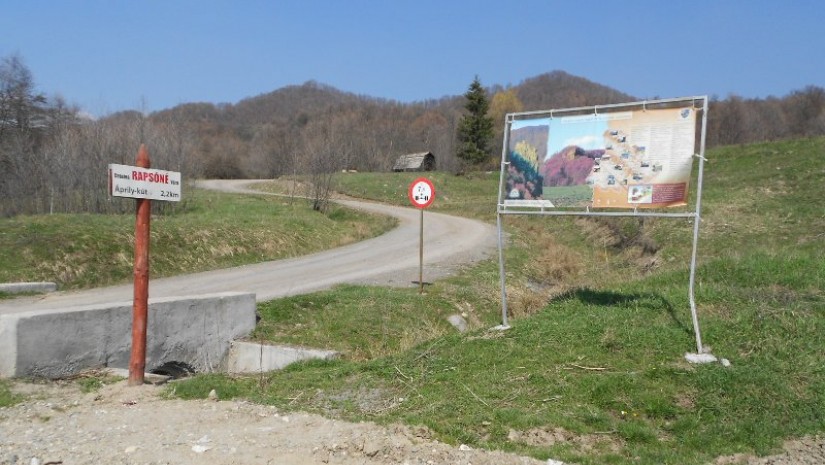 Traseu: Ieşim din Praid spre est, spre Pasul Bucin, urcăm valea Târnavei Mici până la piatra kilometrică nr. 5. Lăsăm maşina în parcarea amenajată şi urcăm pe drumul forestier care urcă prin poieni şi făneţe spre nord pănă când ajungem la formaţiunea stăncoasă Piatra Rab (905 m, 2,5 km de la şosea). Vârful din faţă (952 m), pe care era odată cetatea "Rapsonné" (Cetatea Rab), merită escaladat dinspre versantul sud-estic.
